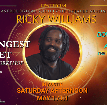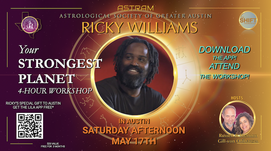The Astrological Society of Greater Austin is proud to announce the return of Ricky Williams on May 17 for a special live workshop, Your Strongest Planet.
